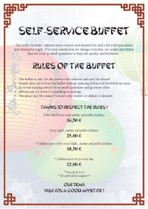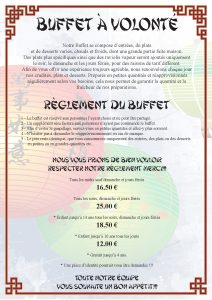 Le fait d’avoir le Buffet à Volonté sur le site du restaurant vous donne des informations sur les règles et le fonctionnement de notre buffet ainsi que les tarifs proposés que ce soit à midi, le soir, le week-end, les jours fériés et en fonction de l’âge de la personne.