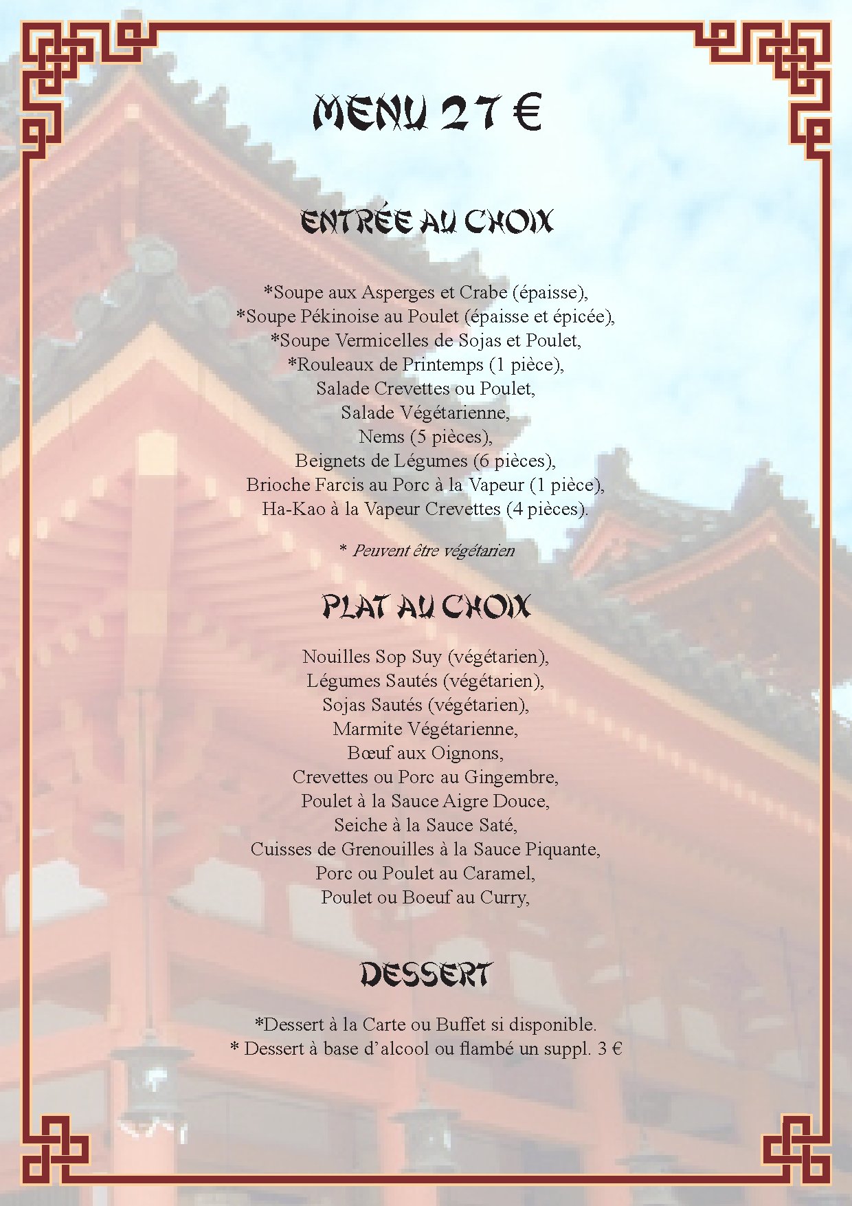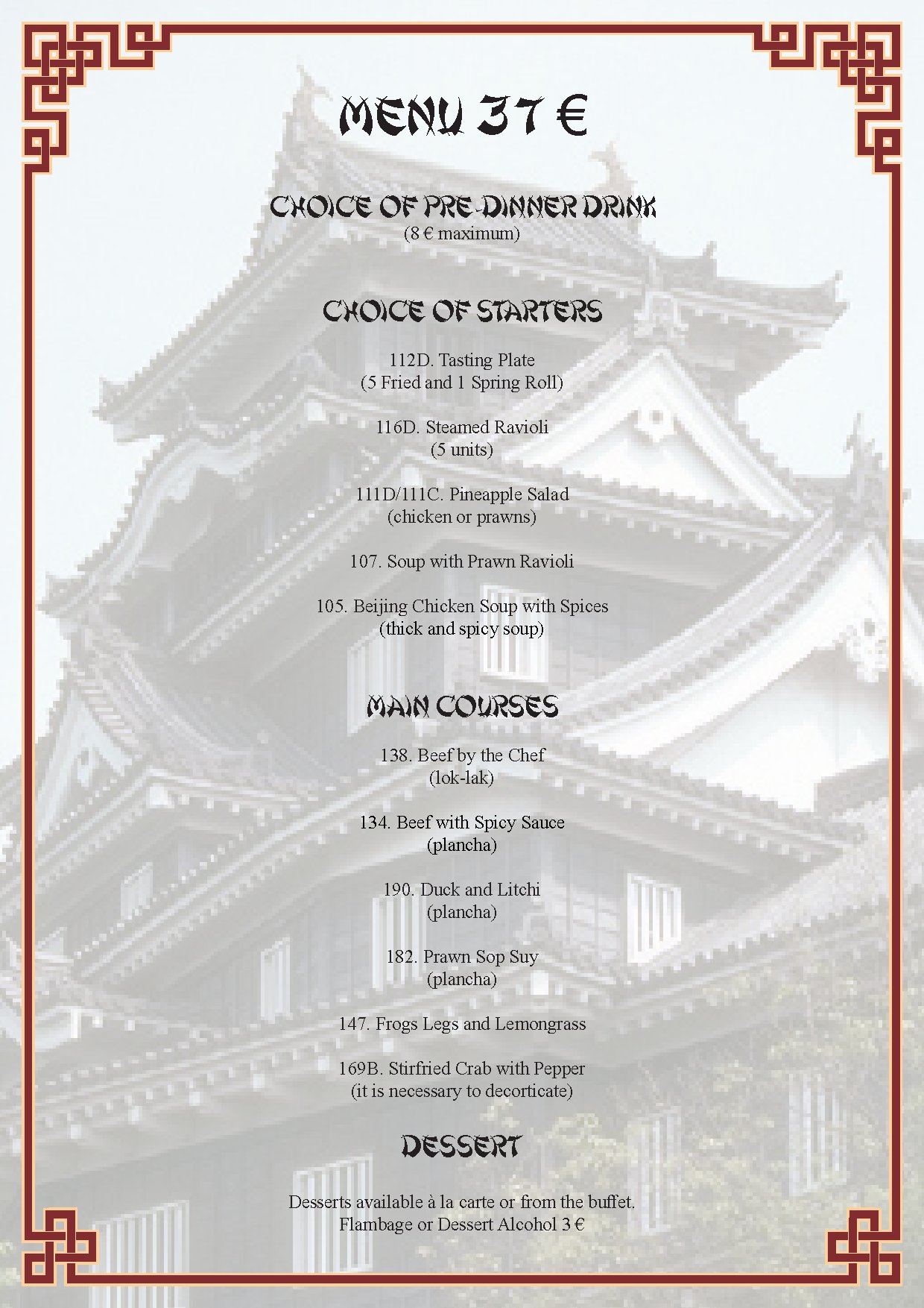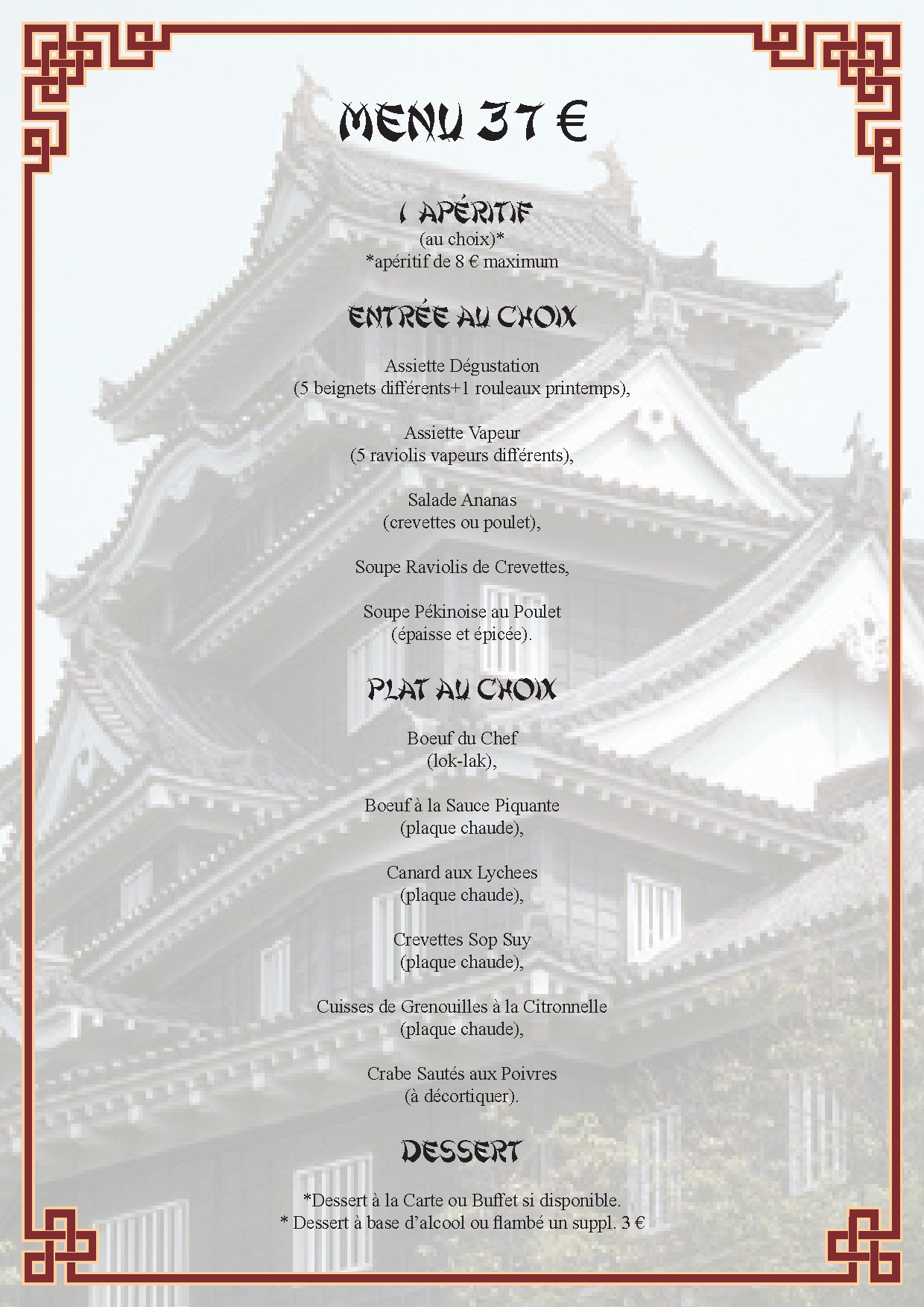 Cela vous permettra de vous donner une idée des choix de menus et des tarifs de notre établissement, des spécialités chinoises et asiatiques proposées par le restaurant et de pouvoir vous donner la possibilité de vous faire un avis sur ce qui vous plaît le plus avant même de venir dans le restaurant.